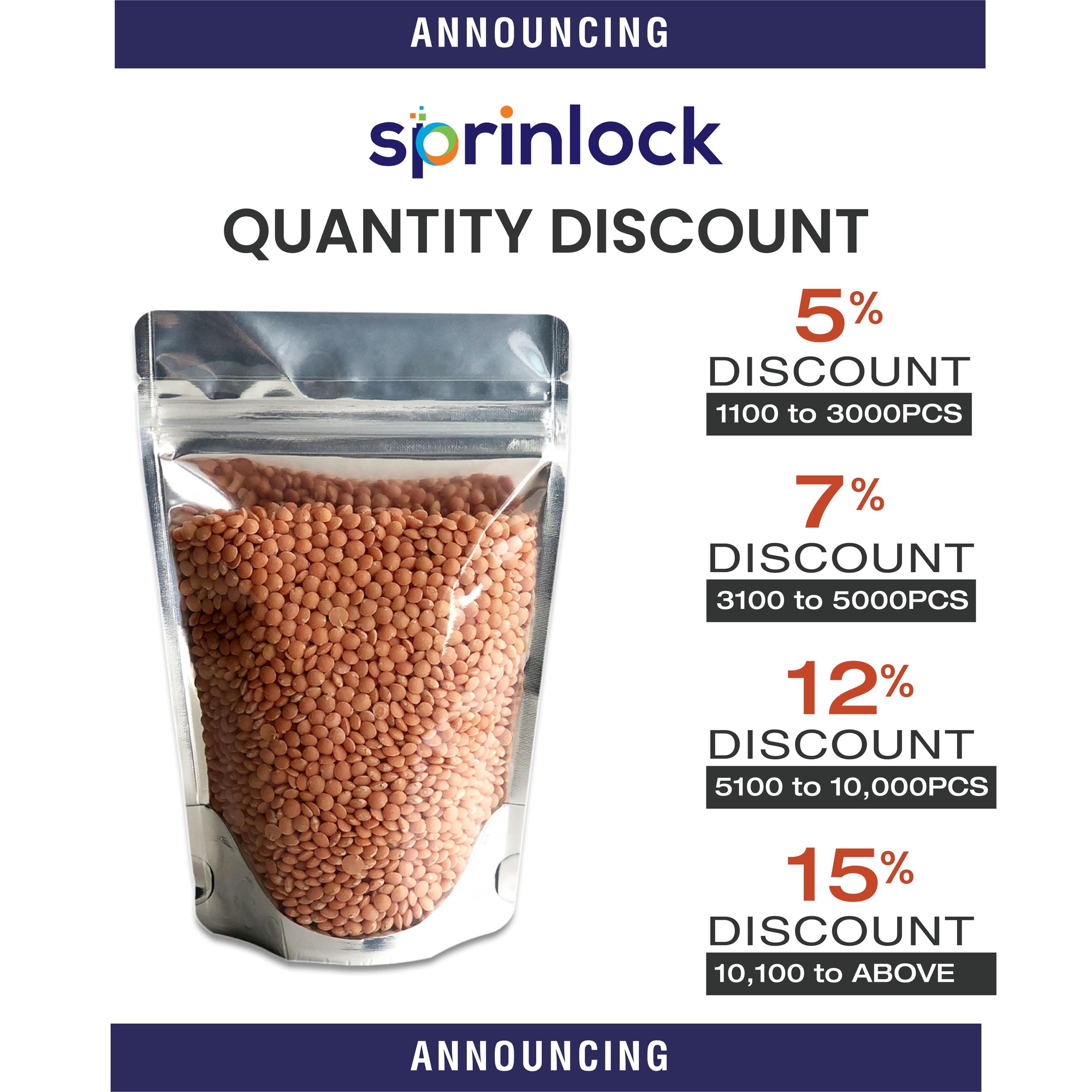 Sprinlock-Clear /Gloss Silver Stand Up Pouches with Zipper